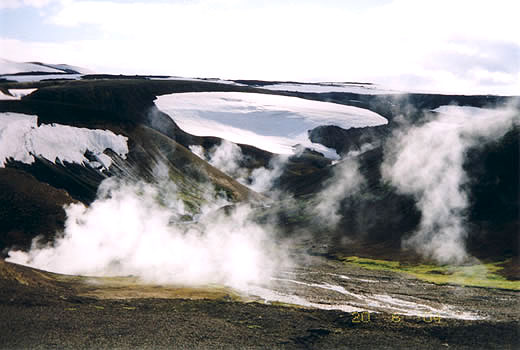 Tyypillistä Islantia: lunta ja kuumia lähteitä.