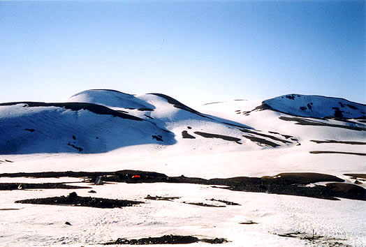 Hrafntinnuskerin kämpän läheltä löytyi lämpäre mihin sai teltan. Ei uskoisi että on kesäkuu.